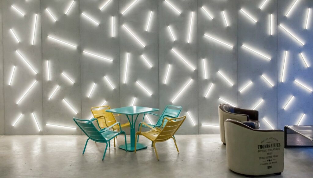 Agencement de réseaux de boutiques, espaces de services commerciaux, espaces tertiaires, aménagements de restaurants, théâtres, cinémas, musées… Nous sommes reconnus pour la mise en œuvre des concepts, la mise au point et la fabrication des mobiliers d’agencement, et pour la réalisation de travaux de finition second-œuvre Tous Corps d’Etat.