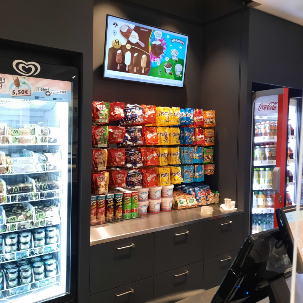 L’entreprise assure également la fabrication et la pose de mobiliers et d’agencements sur mesure, adaptés aux présentations de produits en libre-service.
