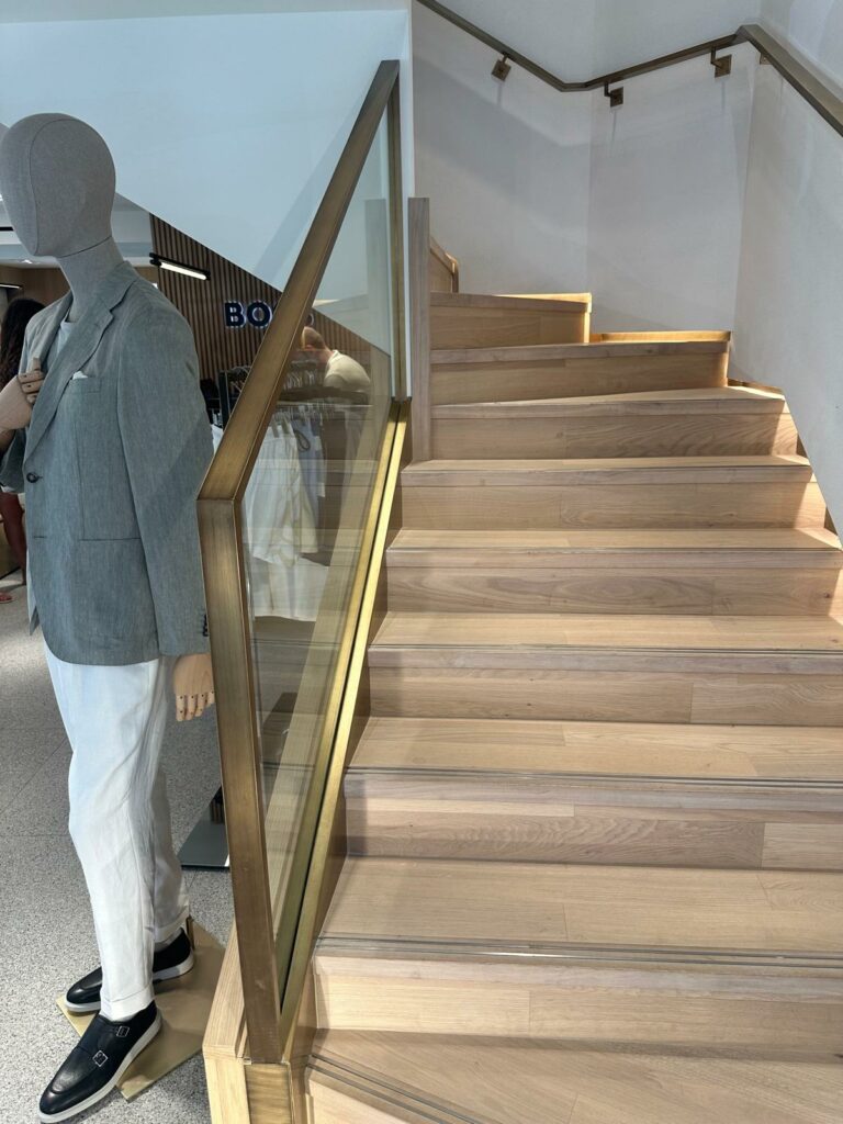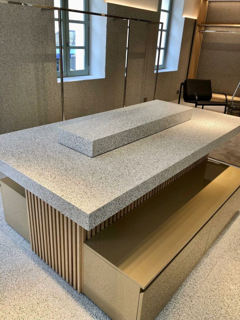 Le projet s’est conclu par la fabrication et la pose de mobilier sur mesure, ainsi que la réalisation d’un salon d’essayage.