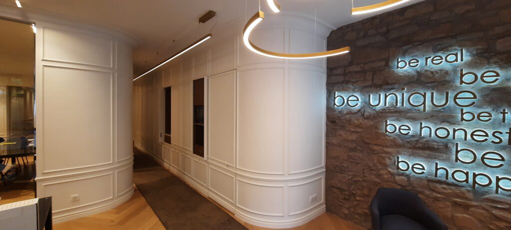 Grizard Agencement a réalisé la façade ainsi que la fabrication et la pose de mobilier sur mesure
