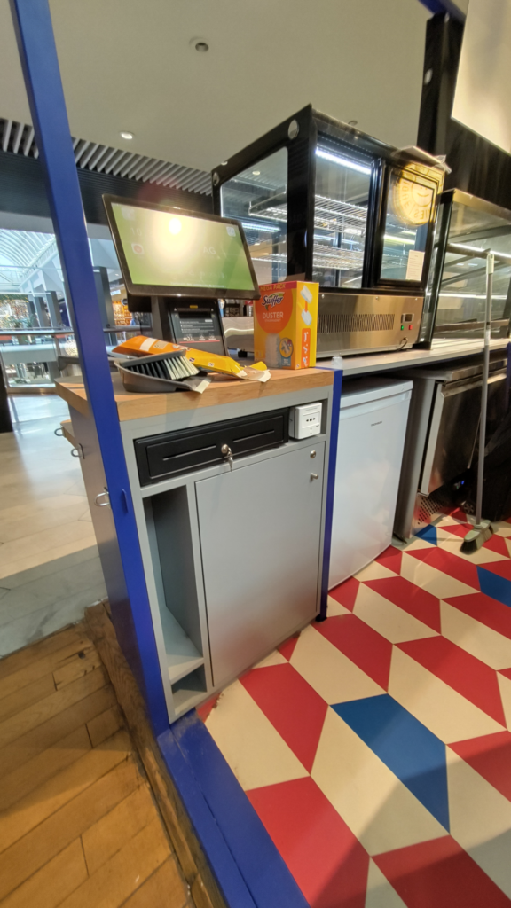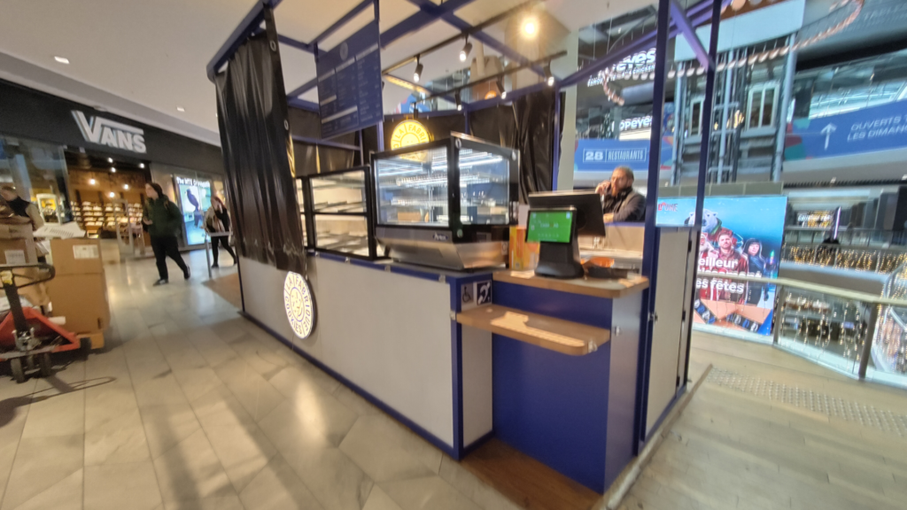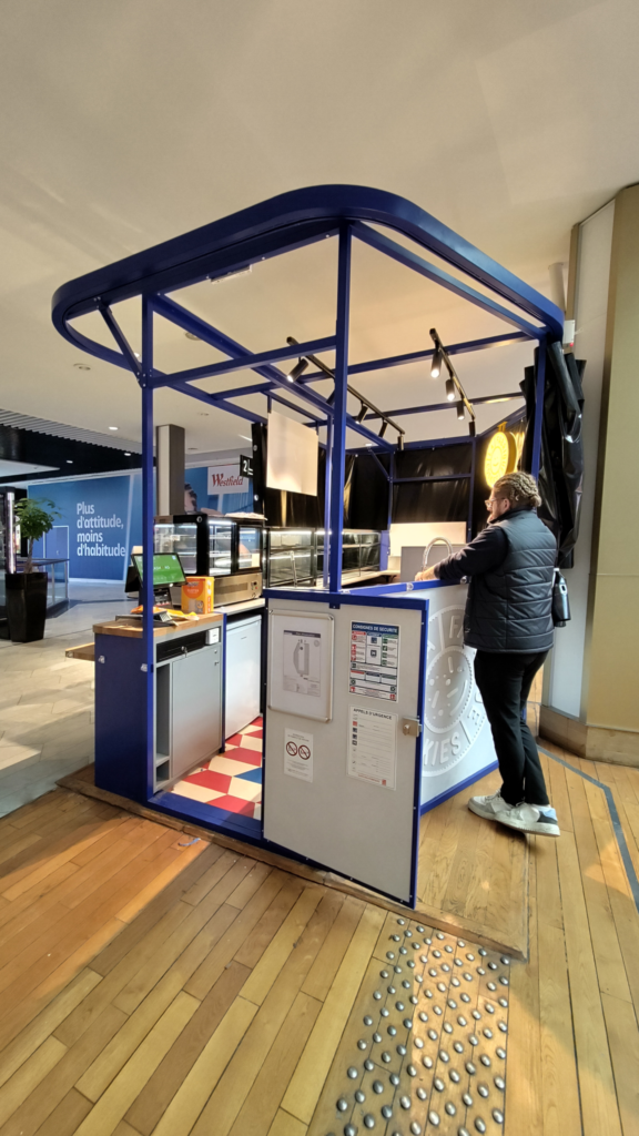 Nous avons fabriqué et installé ce kiosque en une seule nuit, au 2ᵉ étage du centre commercial Westfield La Part-Dieu.