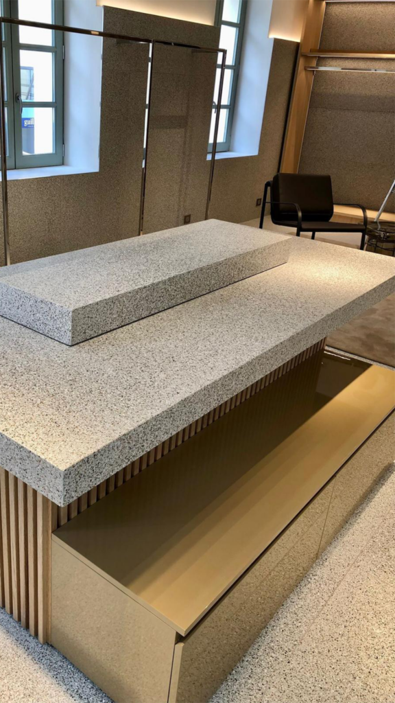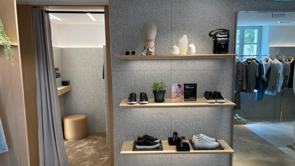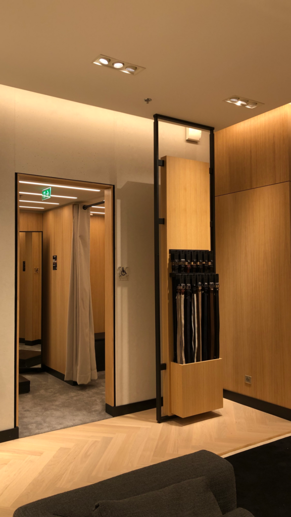 Le projet s’est conclu par la fabrication et la pose de mobilier sur mesure, ainsi que la réalisation d’un salon d’essayage.