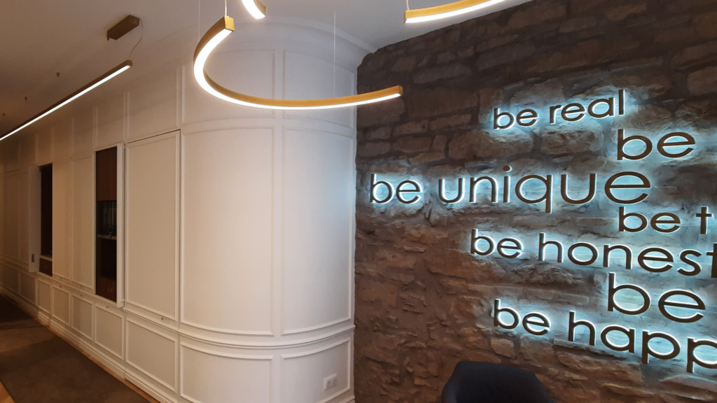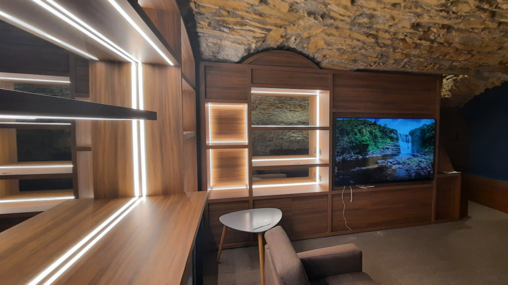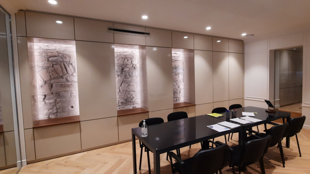 Réalisation de la façade, réalisation et pose de mobilier sur-mesure.