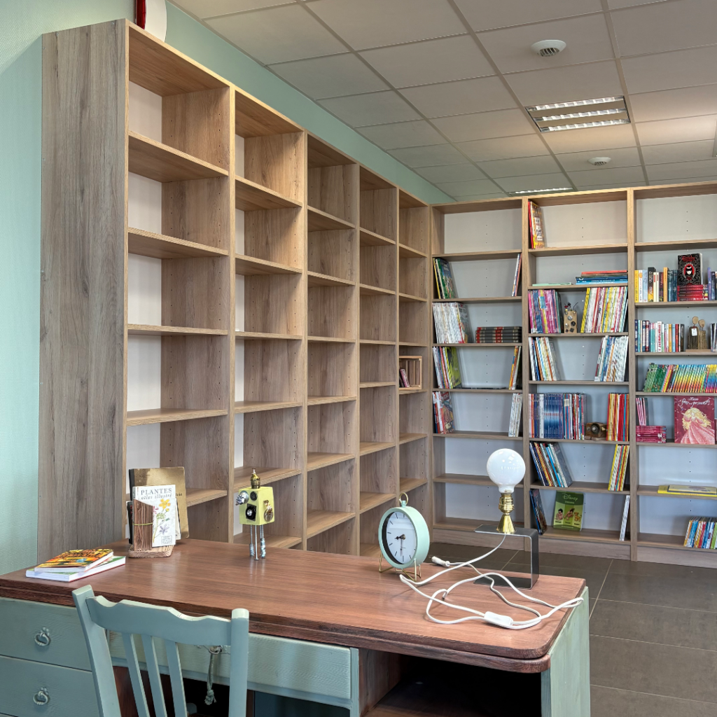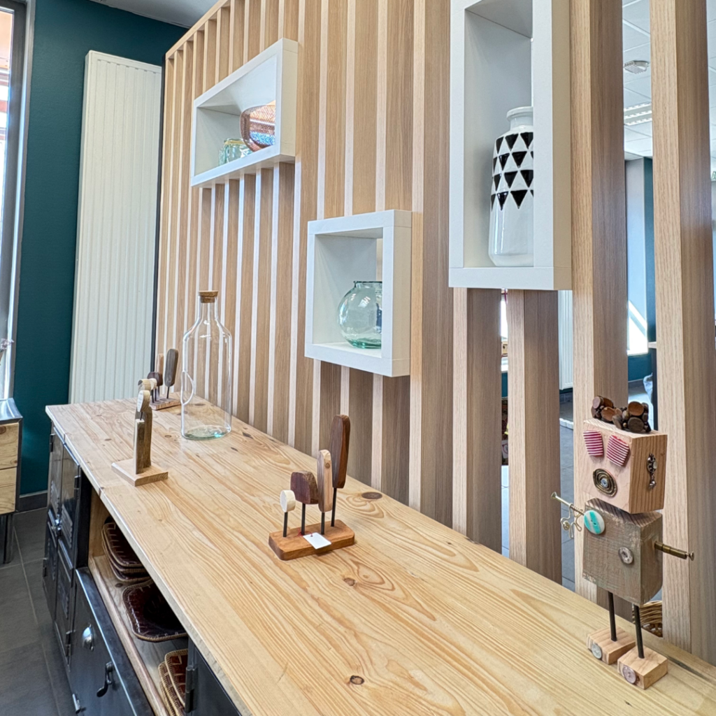 Fabrication et installation de mobiliers 100% recyclés (valorisation des chutes de panneaux issues de chantiers et du stockeur des ATELIERS DE POUILLY).